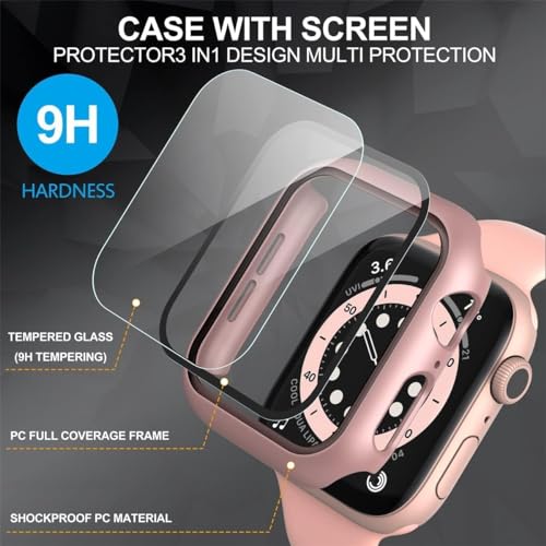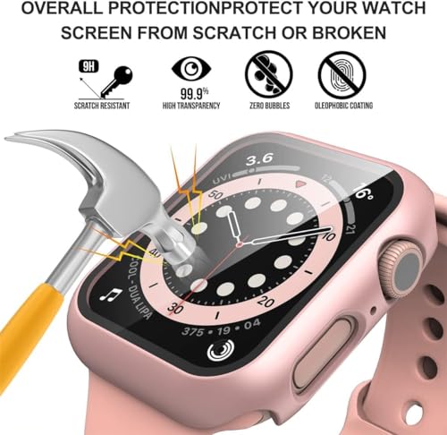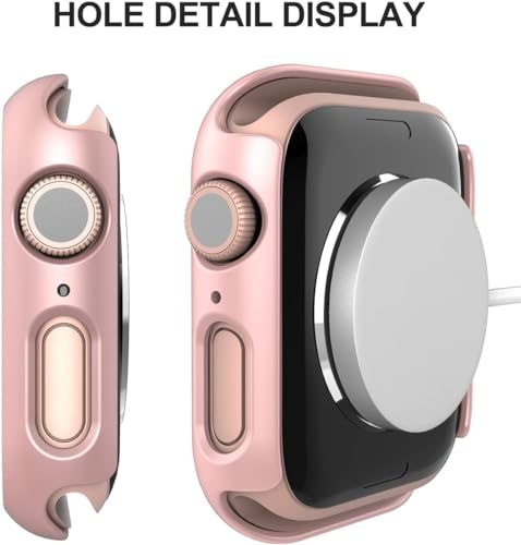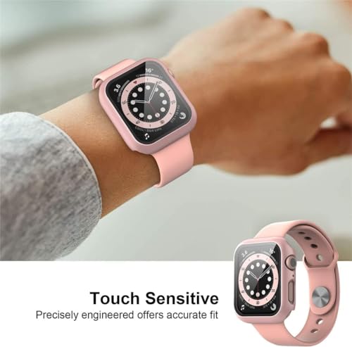 Generic - جراب حماية للشاشة الصلبة بتغطية كاملة من البولي كربونات يحتوي على طبقة الزجاج المقوى وتصميم حواف سوداء مناسب للساعات الذكية 42 ملم - بينك