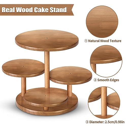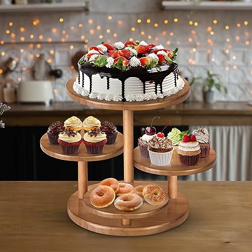 POMINEL - 4 Tier Round Cupcake Tower Stand Wooden Cake Stand Rustic Cupcake Stand Cake and Cupcake Stand Combo Farmhouse Tiered Tray Decor Desert Stands Food Display Stands for Party