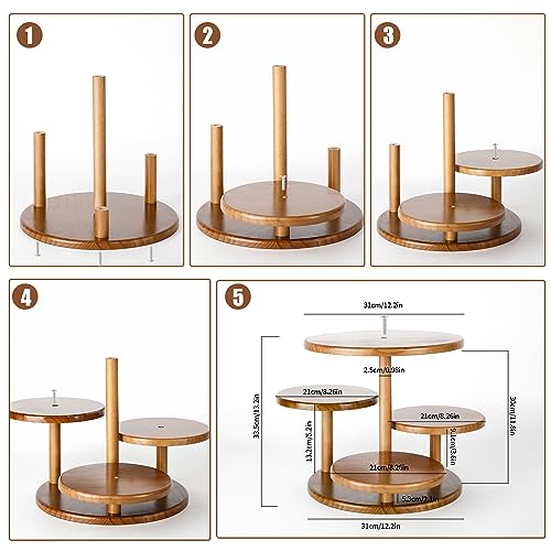 - 4 Tiered Cake Stand --- This cake stand is made of pine, with clear texture and beautiful appearance, practical and durable. It has a total of 4 tier, that is, 4 serving trays. The largest round tray at the top is 31cm(12in) in diameter, and the other three round trays are 21cm(8.3in) in diameter.