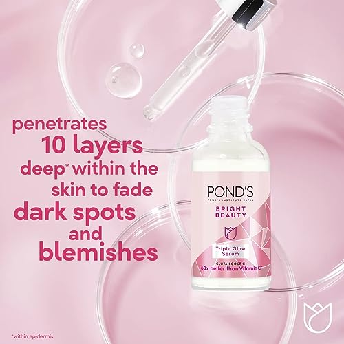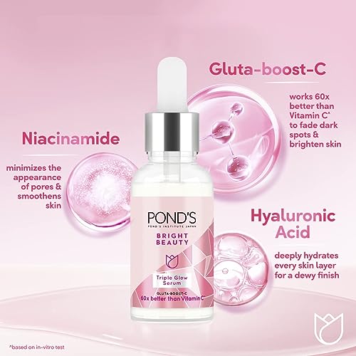 POND'S - Pond's Bright Beauty Face Serum Brightens, Smoothens & Hydrates, Triple Glow Moisturizer with Niacinamide (Vitamin B3), Hyaluronic Acid and Gluta-Boost-C, 30g