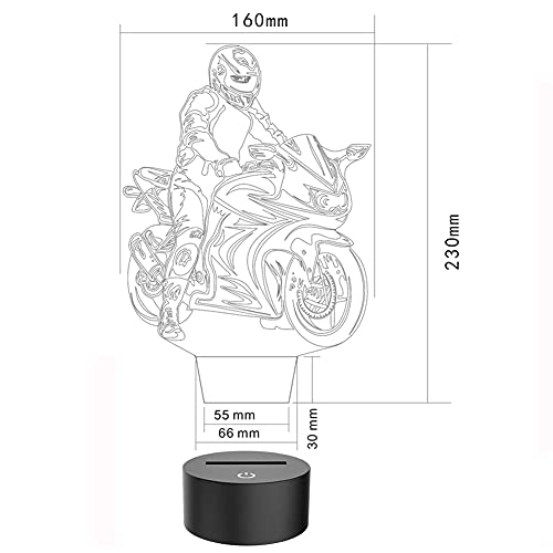 - Creative 3D illusion lamp: this motorcycle night light uses a laser-engraved acrylic plate to provide you with a vibrant 3D illusion. [3D is only vision, the lamp itself is a light guide acrylic plate]. It is a great decoration for the vehicle themed room.