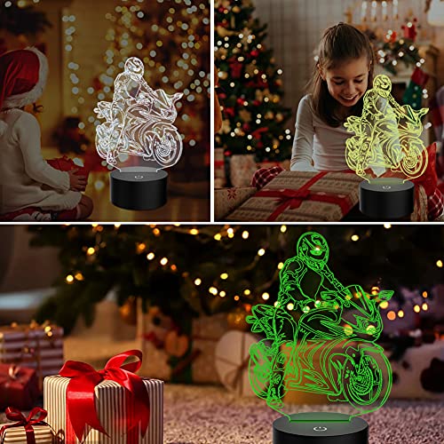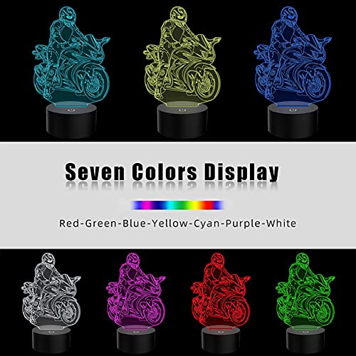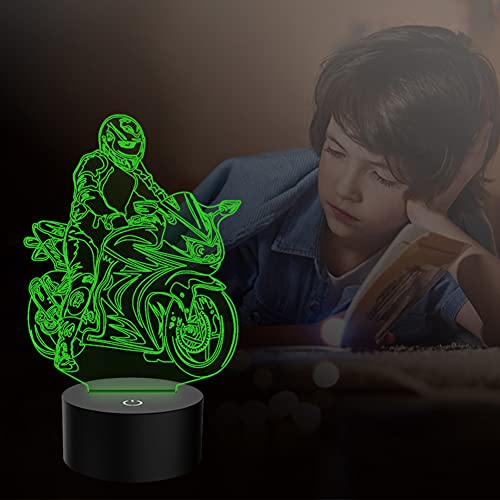 PONLCY - 3D Illusion Motorbike LED Night Light, 7 Colours USB Touch Switch Table Lamp, Bedroom & Living Room Decor