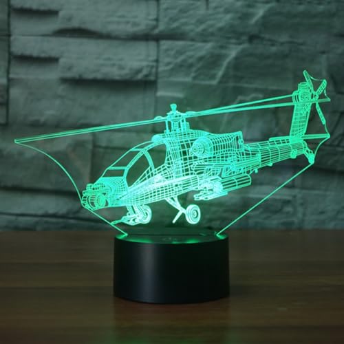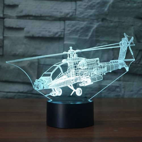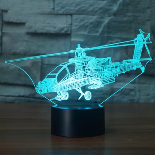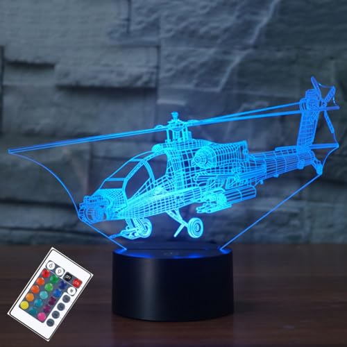 PONLCY - مصباح ليلي على شكل هليكوبتر من بونلسي، مصباح وهمي ثلاثي الابعاد مع جهاز تحكم عن بعد، 16 لون، مصباح مكتب USB، ديكور غرفة النوم، مصباح طاولة للاطفال، الكريسماس، هدايا عيد الميلاد