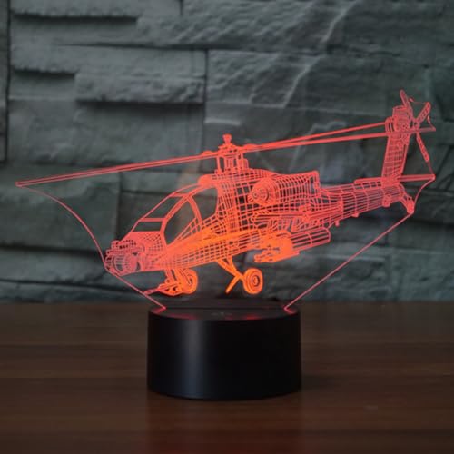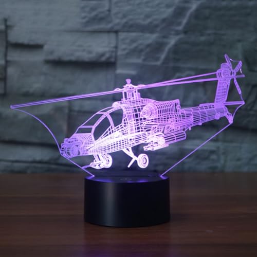 - مصباح وهمي مبتكر ثلاثي الأبعاد يستخدم هذا المصباح الليلي لطائرة الهليكوبتر لوحة أكريليك محفورة بالليزر لتوفر لك وهمًا حيويًا ثلاثي الأبعاد. [ثلاثي الأبعاد هو الرؤية فقط، المصباح نفسه عبارة عن لوحة أكريليك دليل الضوء]. إنه ديكور رائع للغرفة التي تحمل طابع السيارة