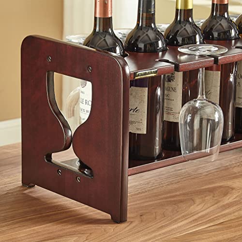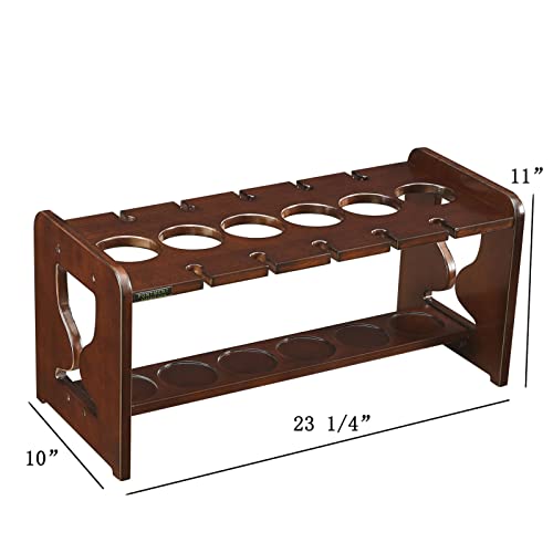 - The overall dimensions of this tabletop solid wood wine rack with wine glass holder are:23.25"X10"X11".It is made of solid poplar wood to ensure the strength of the product can keep your treasured wine safe while storing your most precious 6 bottles of wine and hanging 10 tall glasses. Its reasonable size and beautiful appearance will blend in with any home decor.