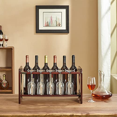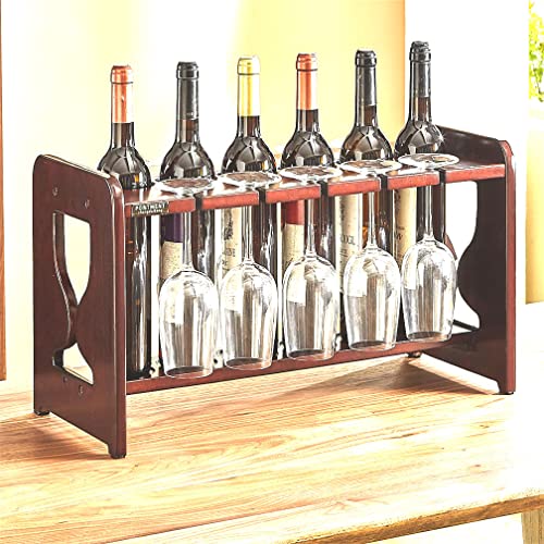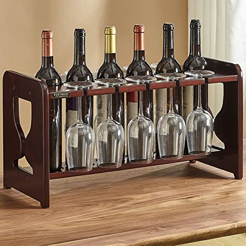 PONTMENT - Wine Rack with Wine Glass Rack Solid Wood Tabletop Wine Rack Countertop Freestanding Wine Bar Rack for Kitchen Pantry Cellar Bar Home..(Cherry)