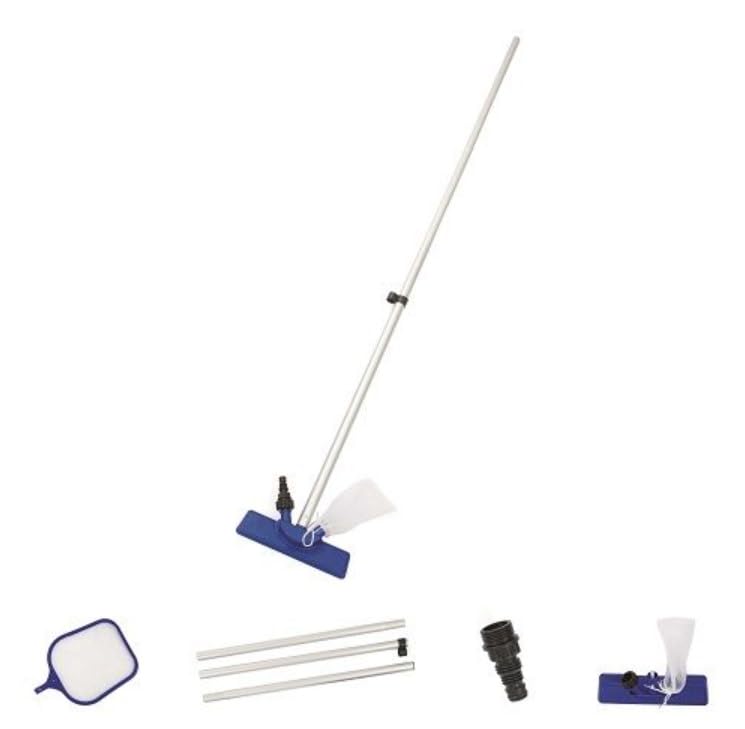 - COMPLETE KIT: Includes telescopic pole, vacuum head, leaf skimmer net and all necessary attachments for comprehensive pool maintenance