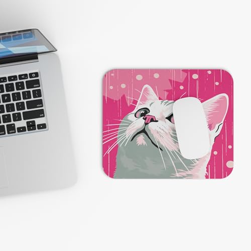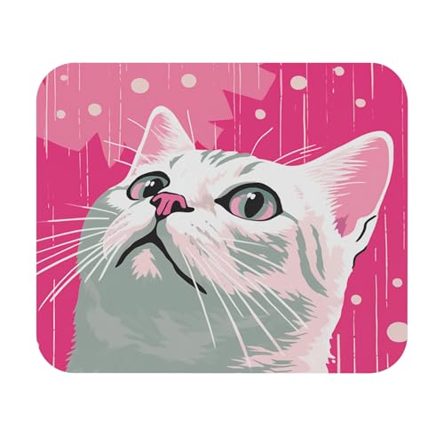 Generic - لوحة ماوس بتصميم قطة بوب آرت، بساط مكتب وردي لطيف وعصري بسطح أملس، قاعدة مانعة للانزلاق ومناسبة للكمبيوتر واللاب توب