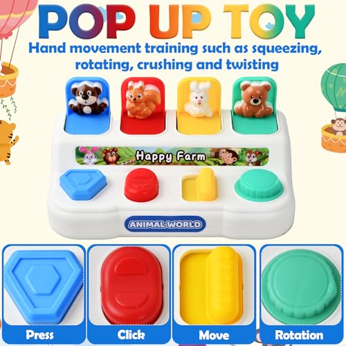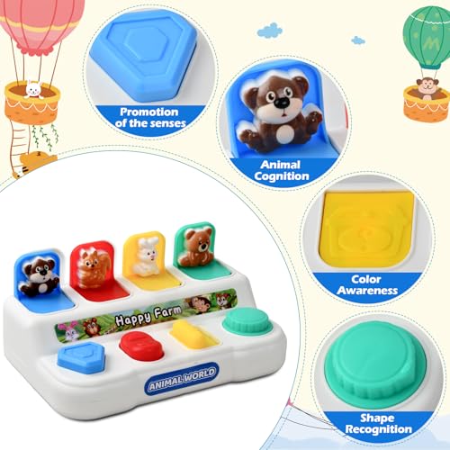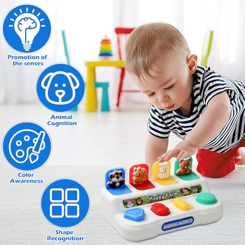 Wisebom - لعبة منبثقة للاطفال من عمر 12 شهر، لعبة السبب والتأثير للاطفال بعمر سنة واحدة، لعبة نشاط منبثقة مع لعبة حيوانات للبنات والاولاد الصغار من سن 1-3 سنوات