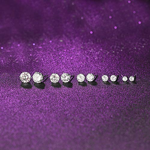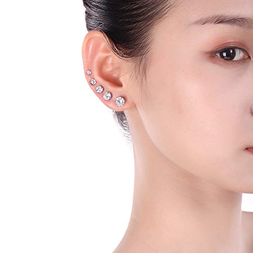 Poplar - Poplar 5 sizes Stainless Steel Stud Earrings Spectacular Cubic Zirconia Set in Hypoallergenic for Men, Women, Boys and Girls, Stones are 3, 4, 5, 6 and 7mm