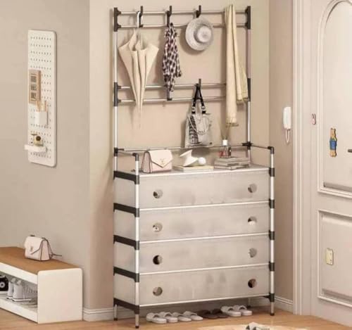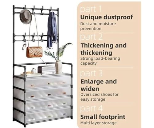 Generic - منظم الأحذية الأمريكي الشهير مقاس جامبو 4 أدوار مع علاقات جانبية - وحدة تخزين معدنية قوية وشيك لترتيب المداخل وتوفير المساحة k