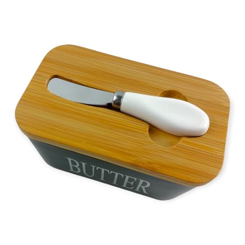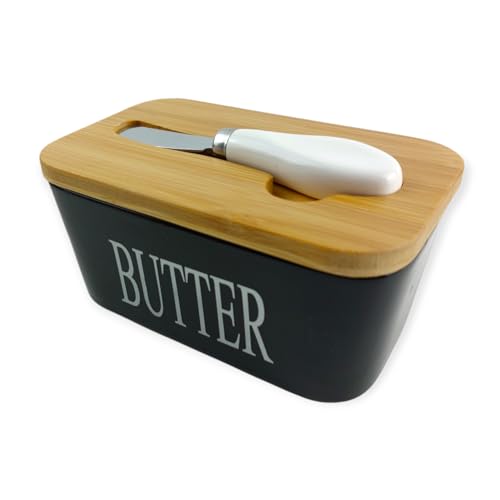 Generic - Porcelain Butter Storage Box With A Wooden Lid And A Knife - Black