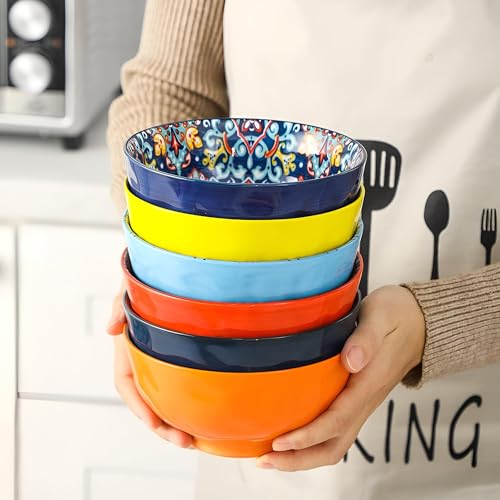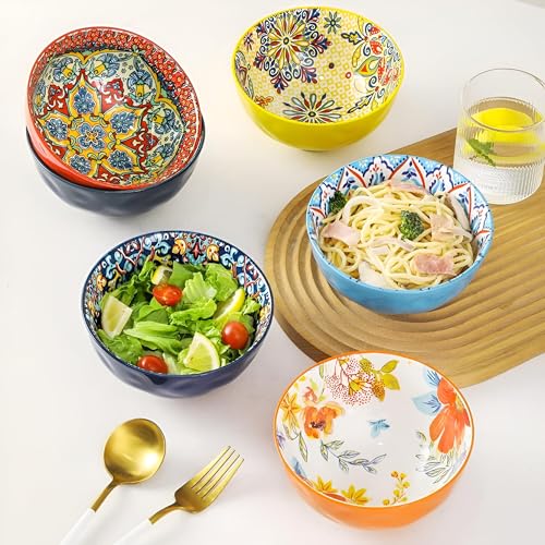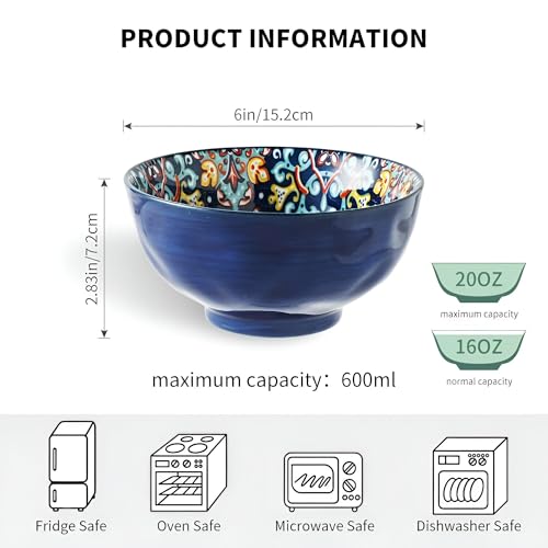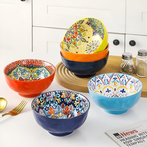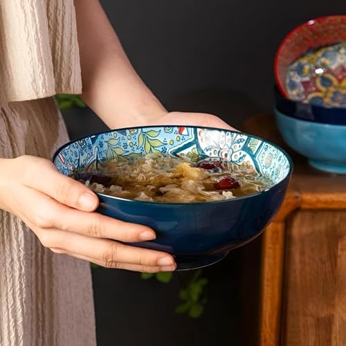 Generic - أوعية بورسلين للحبوب والحساء - استمتع بألوان نابضة بالحياة وأنماط معقدة مع أوعية الخزف المطلية يدويًا، وهي مثالية لتقديم وجباتك المفضلة بأناقة مقاس 12 سم قطعه واحدة
