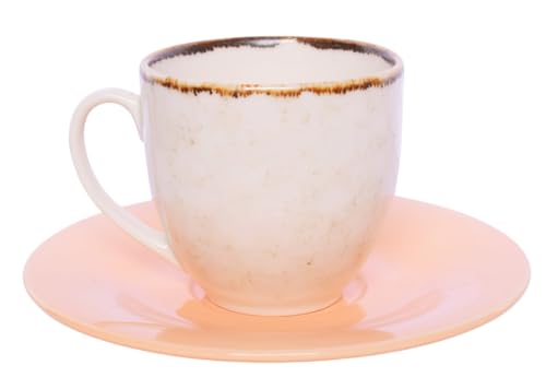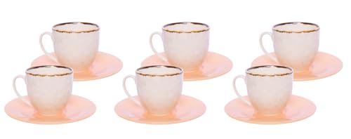 Generic - طقم فناجين قهوة بورسلين مع صحون مكون من 12 قطعة - ابيض وبينك