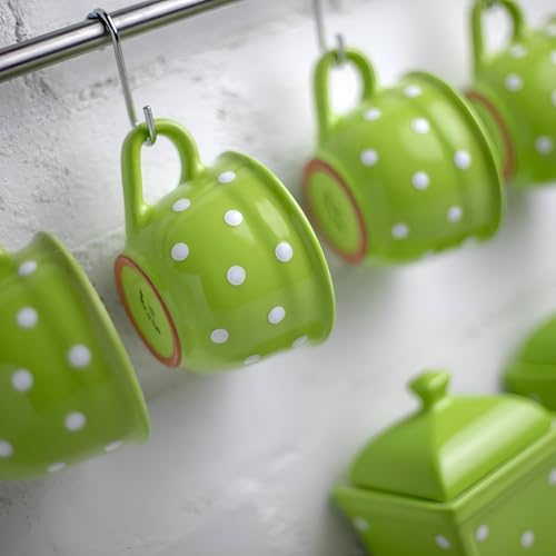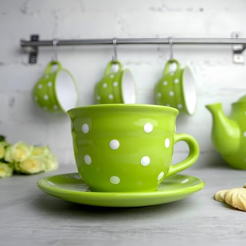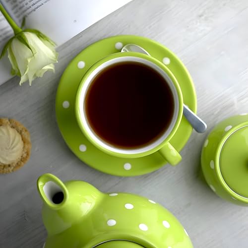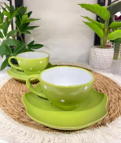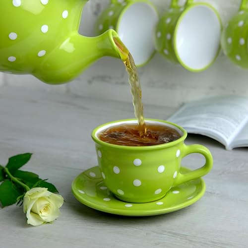 - This set features a stylish cup and saucer design with charming polka dots, making it perfect for adding a touch of elegance and fun to your tea or coffee experience.