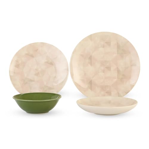 Generic - Porcelain Dinnerware Set, 24 Pieces for 6 People, Cream and Olive Green