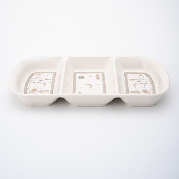 - ELEGANT DESIGN: Beautiful porcelain serving plate with delicate decorative patterns, featuring three separate compartments for organized serving and presentation