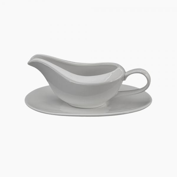 - ELEGANT DESIGN: Classic white porcelain gravy boat with matching saucer plate, perfect for serving sauces, gravies, and dressings with sophistication