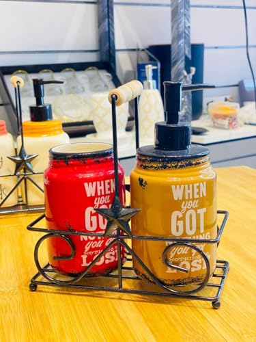 - يتضمن طقم الحمام ديسبنسر صابون بورسلين يسهل ملءه واستخدامه بكل يسر وسلاسة.
