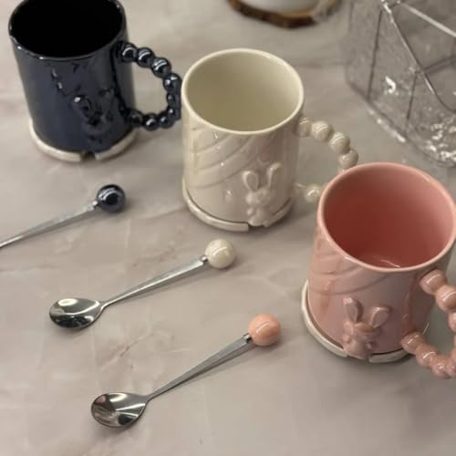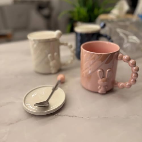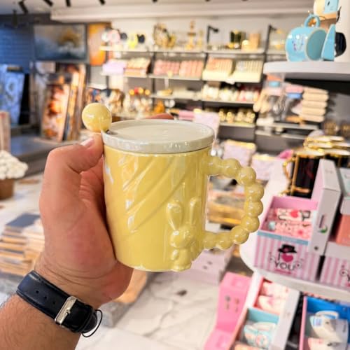 Generic - مج بورسلين بسعة 350 مل مع مقبض بابلز وغطاء ومعلقة لمشروبات ساخنة وباردة تصميم عملي وعصري للاستخدام اليومي في المكتب والمنزل
