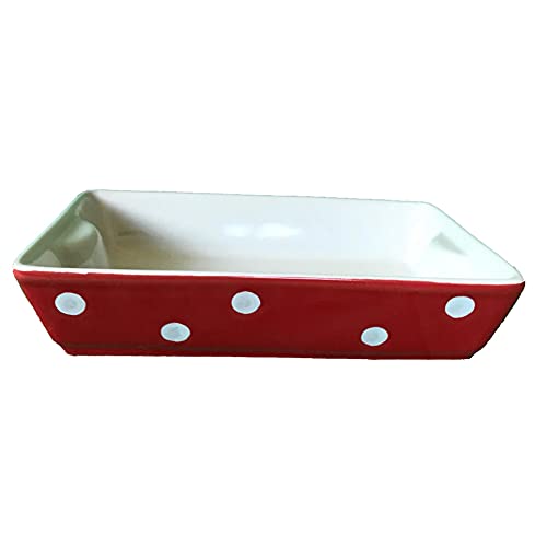 Other - صينية فرن بورسلين تقيس 18 × 13.5 سم بتصميم منقط بلون احمر
