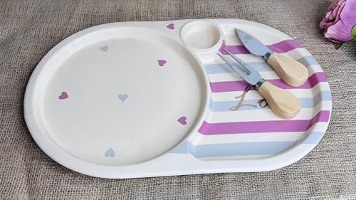 Generic - صينية لتقديم البيتزا بورسلين - أدوات منزلية مع حامل خشبي متين وقطاعة دقيقة لتقديم وتقطيع البيتزا اللذيذة دون عناء
