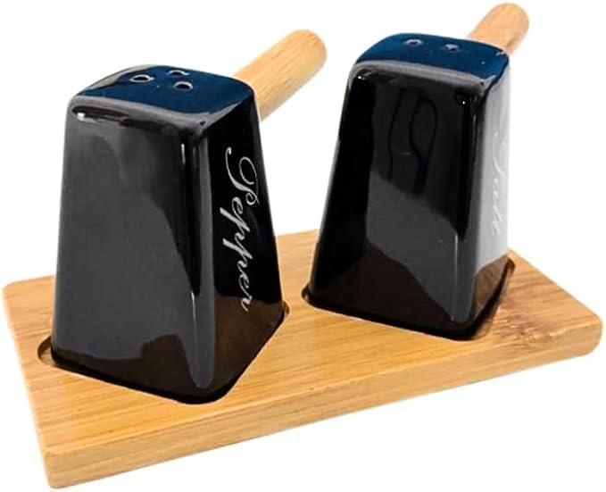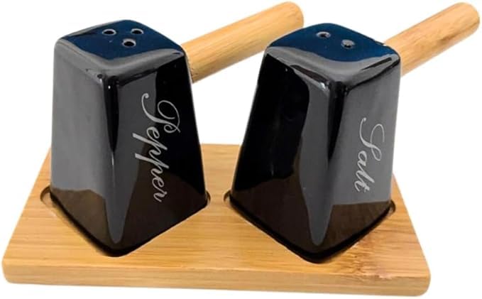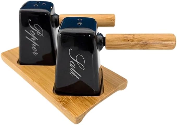 - Complete Set: Includes a salt shaker and a pepper shaker, neatly organized on a bamboo base.