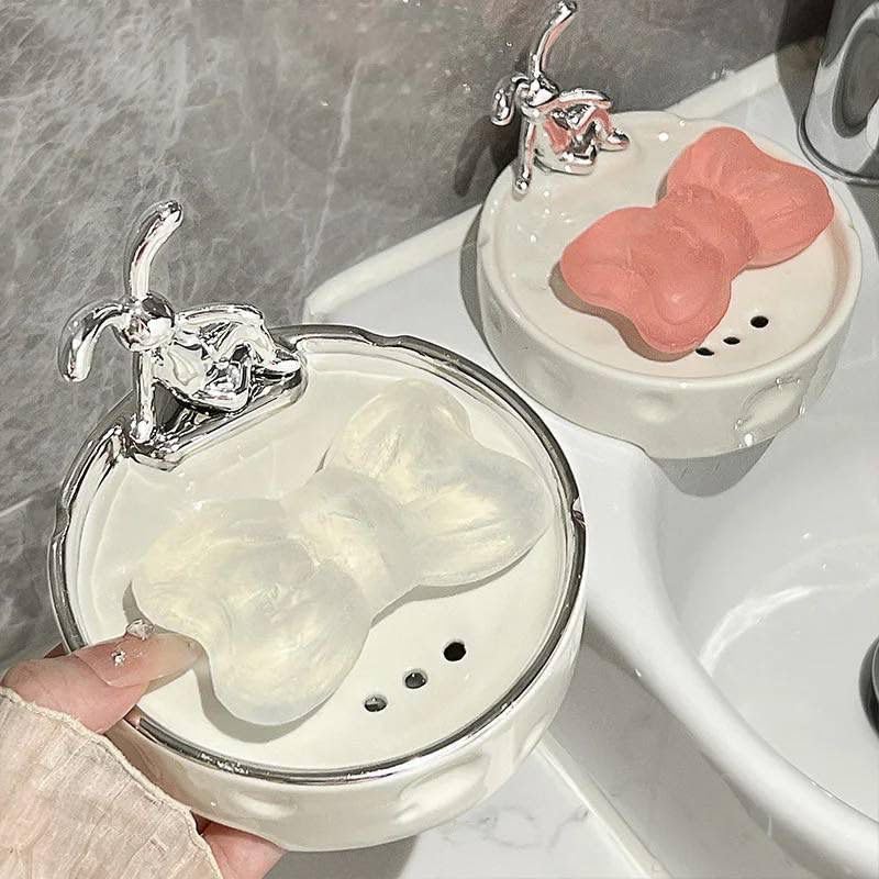 Generic - Porcelain Silver Soap Dish with Holes for Draining Excess Water, Elegant and Practical Soap Dish for Any Place, Perfect Choice for Any Place. (1 Piece)