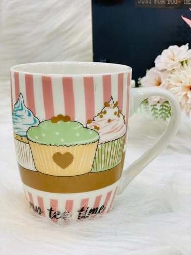 • Deluxe Set: Set of 4 Porcelain Cups decorated with attractive cupcakes and trendy lines