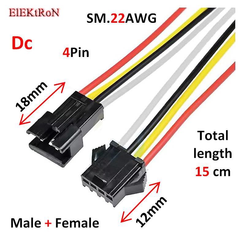 Generic - مجموعة باور كابل، وصلات منافذ JST SM قطعة ذكر وقطعة أنثى بـ 4 دبابيس لتوصيل شرائط إضاءة ليد أو أي جهاز يتطلب اتصالًا سريعًا، كابل بطول 15 سم ومقياس سلك 22 ايه دبليو جي لأعمال الإصلاح أو التوصيل