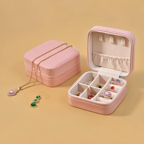 Generic - Portable Accessories Case, Small Storage Boxes, Portable Jewelry Storage Holder for Rings Necklaces Earrings Bracelets - Travel Jewelry Bag, Gift Boxes Organizer for Girls and Women(Pink)