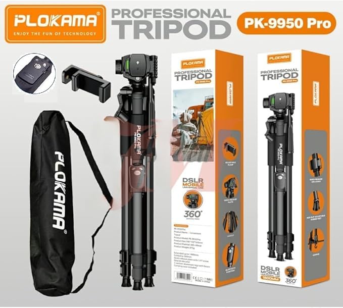 - حامل ثلاثي القوائم محمول من خليط معدني من الألومنيوم متوافق مع حامل ثلاثي القوائم يونتينج 5208، 3388، بلوكاما PK-9950 برو لأي موبايل وكاميرا وغيرها + جهاز تحكم مجاني + حامل موبايل مجاني قابل للتعديل