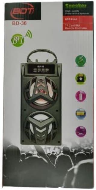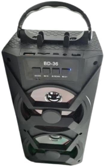 Generic - Portable BD-36 Dual-Speaker System with Bluetooth, Memory Card, USB Flash Support, Strong 3D Sound, Long Battery Performance, Built-In Mobile Holder – Travel-Ready Audio (NO BOX) (One pack)