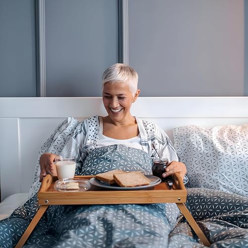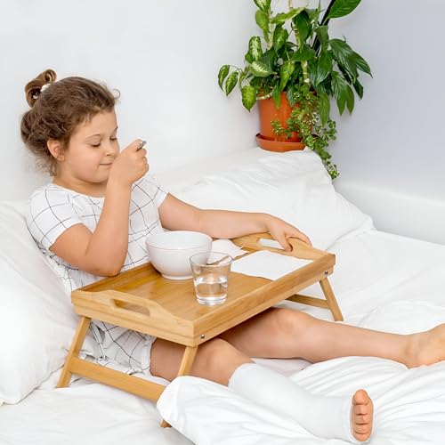- Designed for the modern home, the legs of this bamboo breakfast tray fold easily for space-saving storage. Simply fold it away in a corner or closet when not in use – it's that simple! This convenient feature makes it ideal for those with limited space, allowing you to enjoy the tray's functionality without sacrificing valuable room. The foldable design also makes it easy to transport, perfect for picnics or taking on the go.