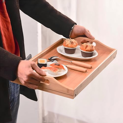 - Transform your breakfast experience with this elegant bamboo breakfast tray! Measuring a generous 50cm x 30cm, this spacious tray is perfect for serving everything from fluffy pancakes to a selection of delicious snacks, making breakfast in bed a delightful routine. Its ample size comfortably accommodates a full meal and drinks, offering a luxurious and convenient way to start your day or enjoy a relaxing brunch.