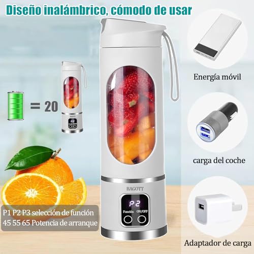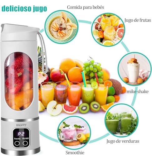 BAGOTT - Portable Blender, 450ml Juicer Machine, Smoothie Blender with 12 Blades, USB Rechargeable Juicer Cup for Smoothies and Smoothies, Juices