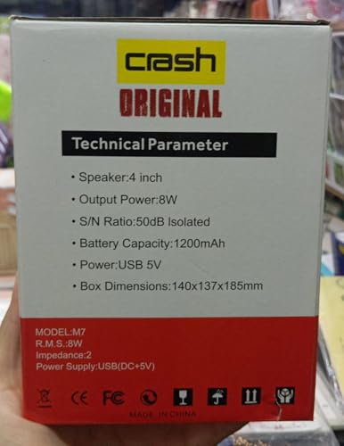 - مكبر صوت بلوتوث صغير ومحمول: يتميز Crash M7 بتصميم خفيف الوزن ومحمول مثالي للسفر أو الحفلات أو الاستخدام المنزلي. على الرغم من حجمه الصغير، فإنه يوفر 8 واط من الصوت الواضح والمتوازن مع صوت جهوري قوي، مما يضمن تجربة صوتية غامرة أينما ذهبت.