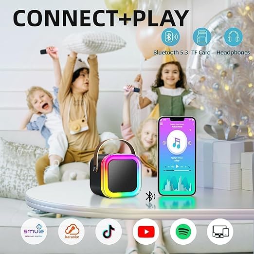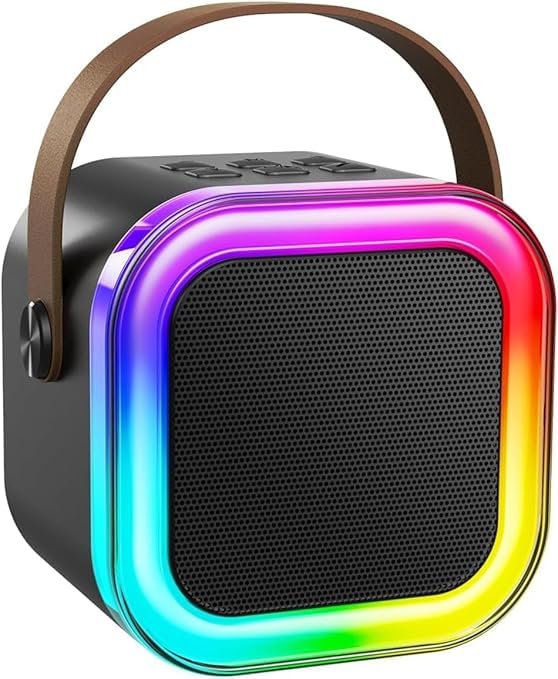 - PORTABLE DESIGN: Compact 9*11*5 cm wireless speaker with RGB LED lighting effects and built-in rechargeable battery for on-the-go entertainment