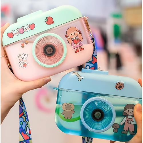 - The Kawaii Camera Water Bottle is designed with a playful and trendy aesthetic, measuring 6.7 inches in length and 4.92 inches in height. With a capacity of approximately 14oz, it is perfect for bringing along on summer adventures. This bottle combines style with functionality, making hydration a fun experience for teenagers, kids, and anyone looking to add a splash of color to their daily routine.