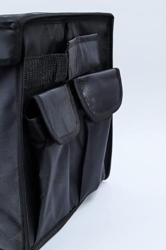 - هذا المنظم هو الحل المثالي للتخلص من الفوضى في شنطة السيارة أو المقعد الخلفي أو المنزل أو الجراج! منظم شنطة السيارة يتميز بالكثير من الجيوب لتنظيم ووضع أدوات ومعدات سيارتك والبقالة وأكياس البقالة وأدوات الطوارئ ولوازم التنظيف والمقتنيات المنزلية وما إلى ذلك. يمكنك استخدام منظم شنطة السيارة في تخزين أغراض السيارة والشاحنة. مناسب لسيارة الدفع الرباعي والشاحنات والسيارات والجيب وأي مركبة في العموم.