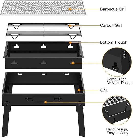 - سهلة الاستخدام: لا توجد أدوات مطلوبة، افتح الشواية وقم بتركيب الشواية. يمكنك البدء في الطهي في أي وقت وفي أي مكان والاستمتاع بسهولة بالشوي في الهواء الطلق.