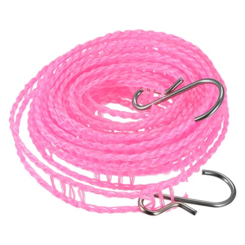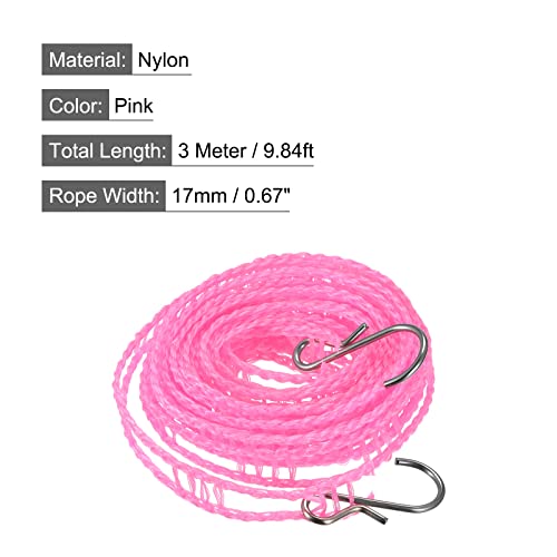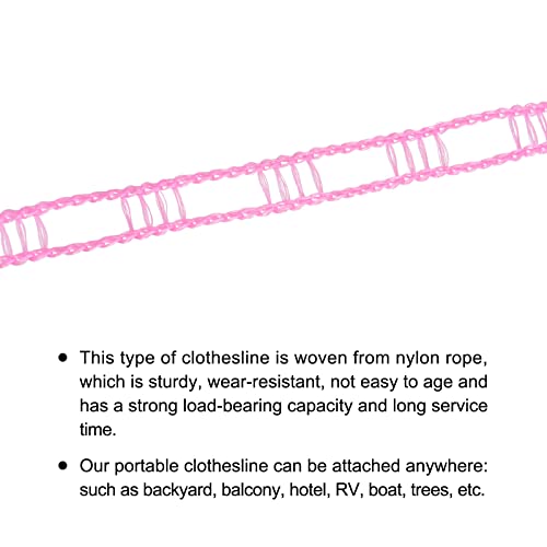 Generic - منشر بحبل نايلون بتصميم محمول مقاوم للانزلاق والرياح لتجفيف الغسيل بالخارج في الفناء والتخييم والسفر، 2.95 م، لون وردي