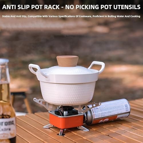 - Designed for stability and ease of use, this portable stove is equipped with a strong support system. It features anti-slip support arms and foldable metal feet, allowing for secure placement on various surfaces. The compact design lets you easily pack it into a nylon carry bag, ensuring portability during your travels. Its enhanced stability minimizes the risk of tipping over, making it a reliable choice for outdoor enthusiasts.