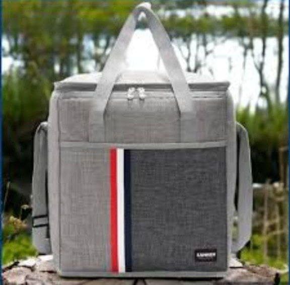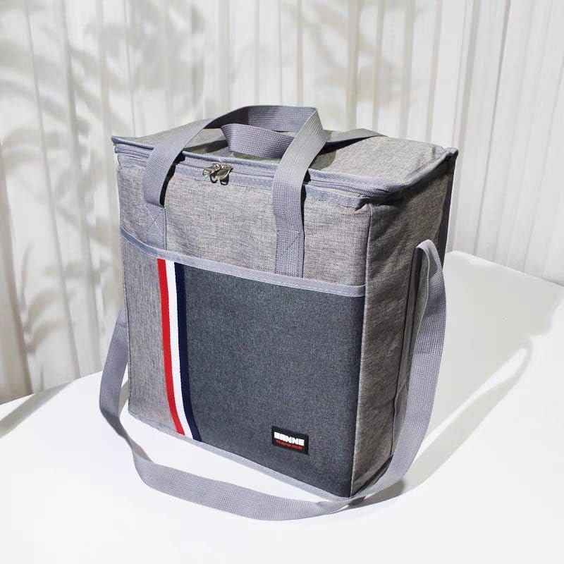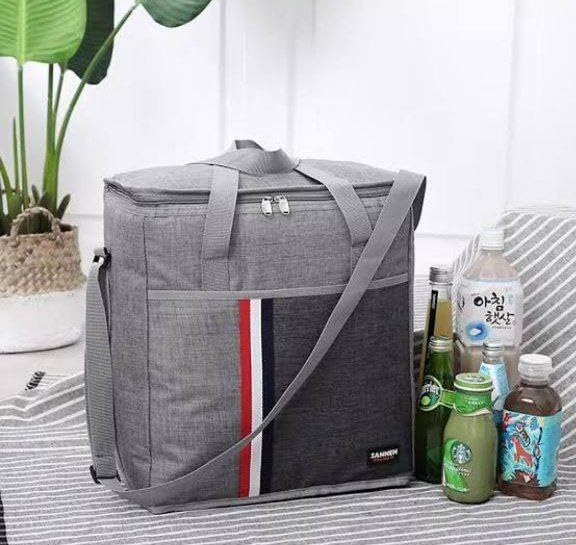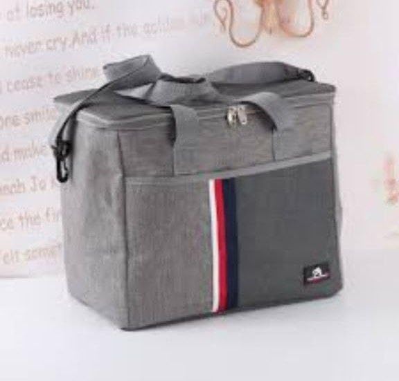 Generic - Portable Cooler Bag, 20.6L, Grey and Navy with Signature Strip, Thermal Insulated Picnic Bag with Shoulder Strap, 31x18.5x26cm
