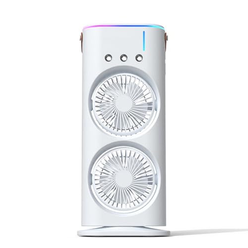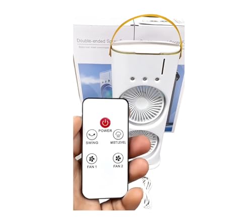 Generic - مروحة تبريد محمولة مع جهاز ريموت كنترول 3 أوضاع سرعة قابلة للدوران خزان مياه بالرذاذ 50.0 واط أبيض