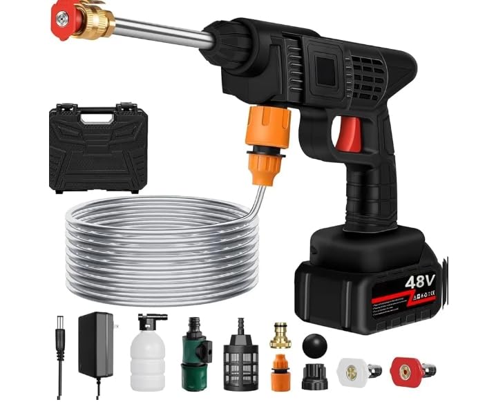 Generic - جهاز غسيل لاسلكي محمول، مسدس رش ماء بضغط عالي 48 فولت، مع خرطوم 5 متر، متعدد الاستخدامات لغسيل السيارات والدراجات والتنظيف