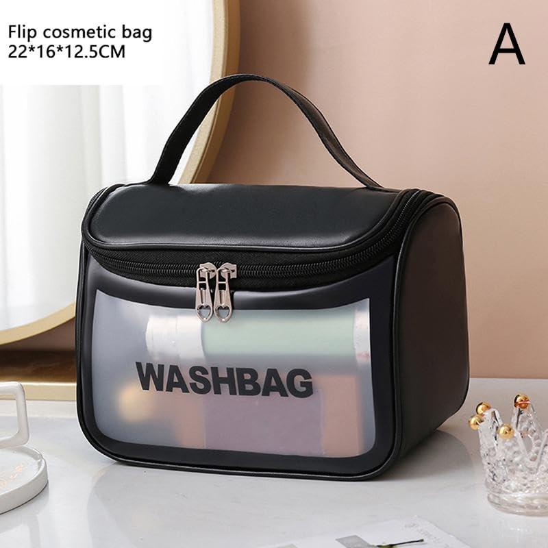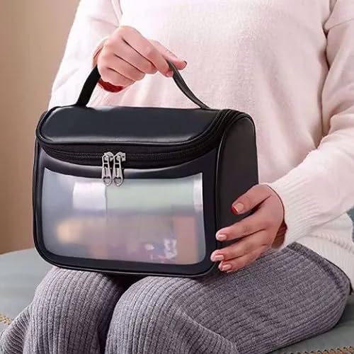 Generic - Portable Cosmetic Bag, Black with Clear Window, with Handle, Travel Toiletry Bag, 23x17x14cm