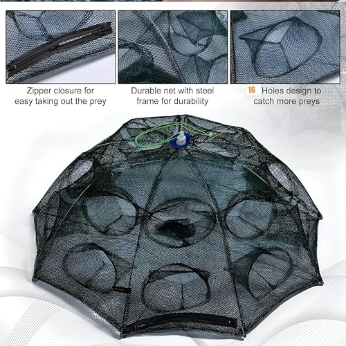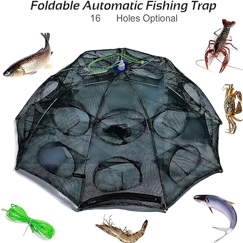 Generic - مصيدة كابوريا محمولة - شبكة صيد قابلة للطي بتصميم مزدوج الطبقات، بـ8 جوانب و16 فتحة لالتقاط الكابوريا وسرطانات البحر بكفاءة