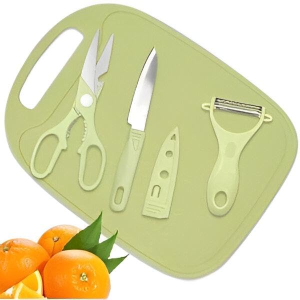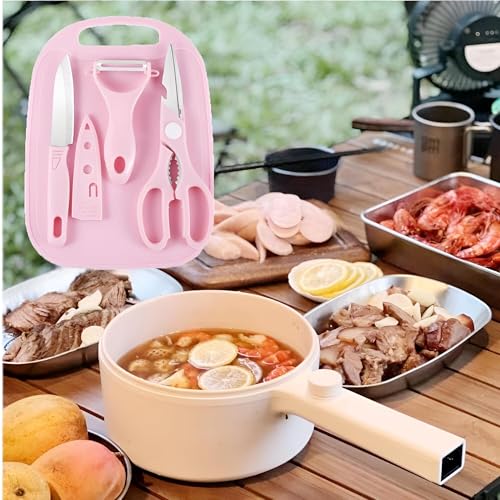 - This compact set includes four essential tools—a cutting board, a sharp knife, a peeler, and kitchen shears—perfectly sized for travel, making it ideal for preparing fruits, vegetables, or meat on the go without needing full-sized kitchen equipment.