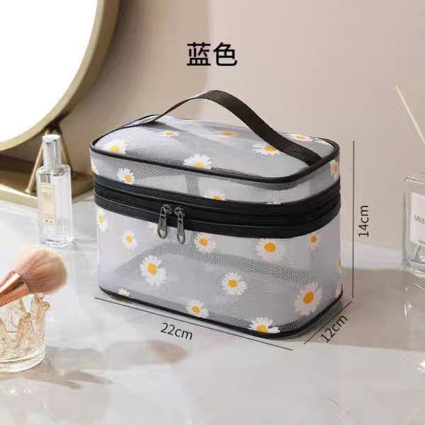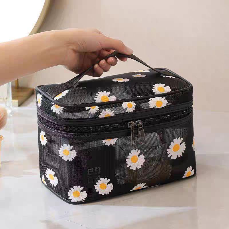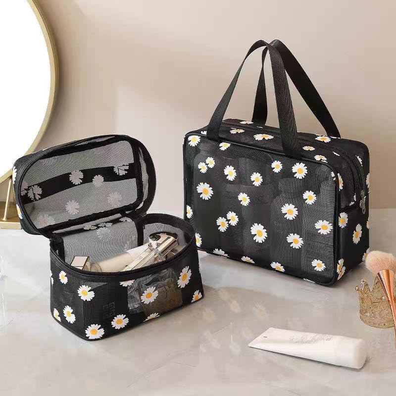 Generic - شنطة مكياج محمولة بتصميم زهرة الاقحوان، شنطة العناية الذاتية، مجموعة شنط منظمة من قطعتين، شنط مستحضرات تجميل شبكية بتصميم زهرة الاقحوان، سعة كبيرة وشنطة سفر خفيفة الوزن